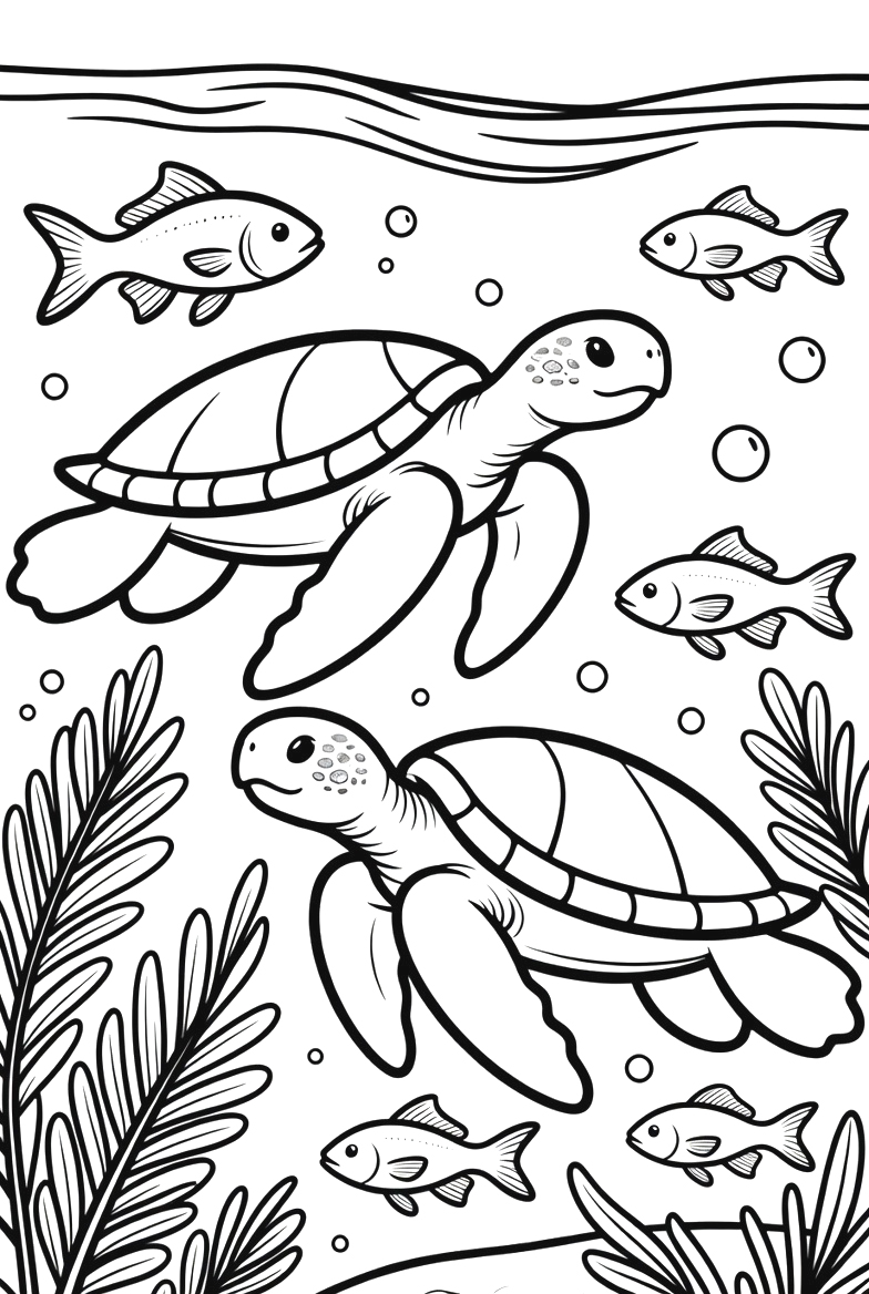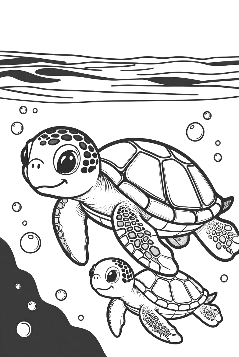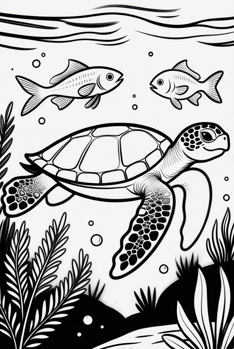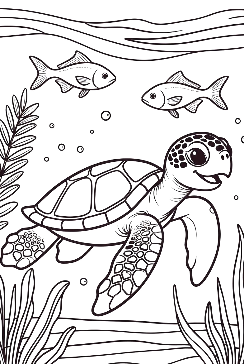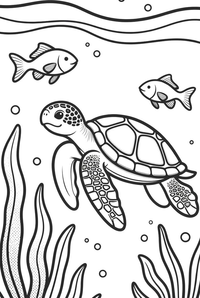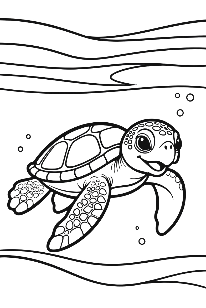75 Turtle colouring in pages, all 75 are free to save and print. Cute turtles to color in! Turtles swimming to the left or right, swimming alone or with friends or family, sometimes swimming with fish and between seaweed, under the ocean, often with bubbles. Turtles just being turtles!