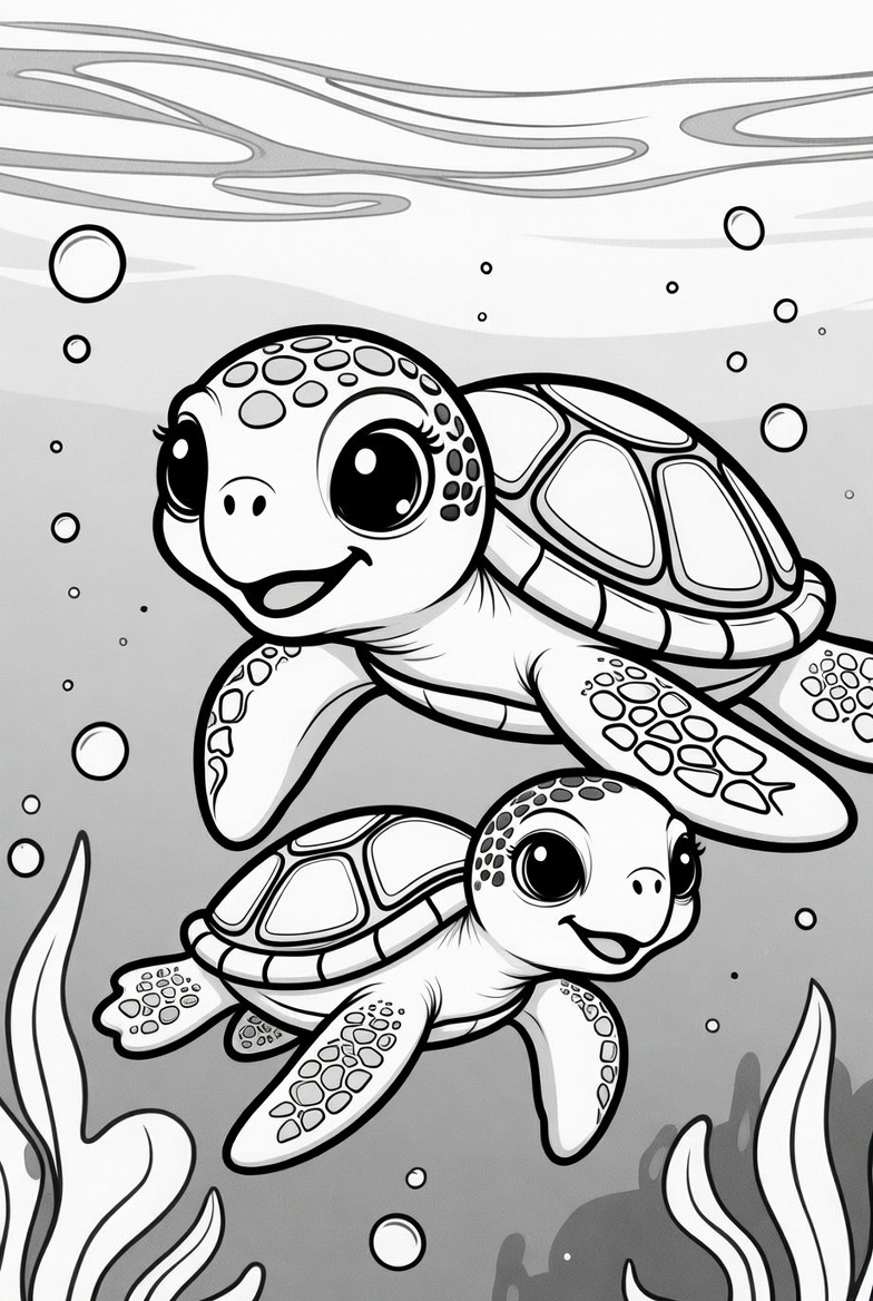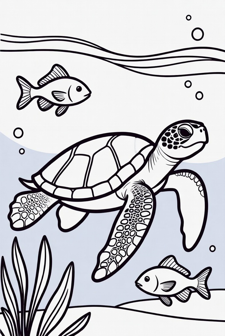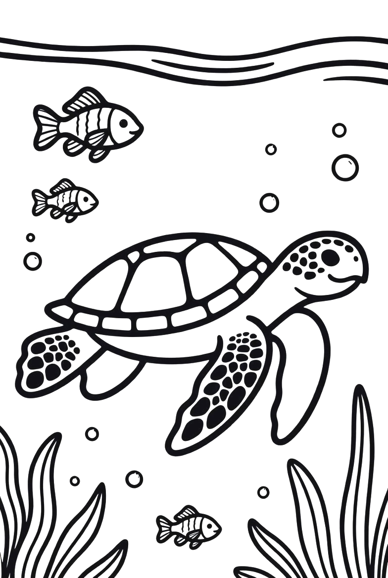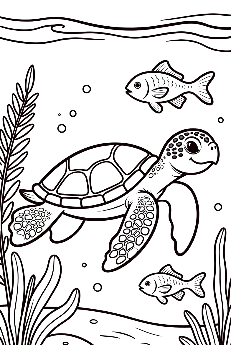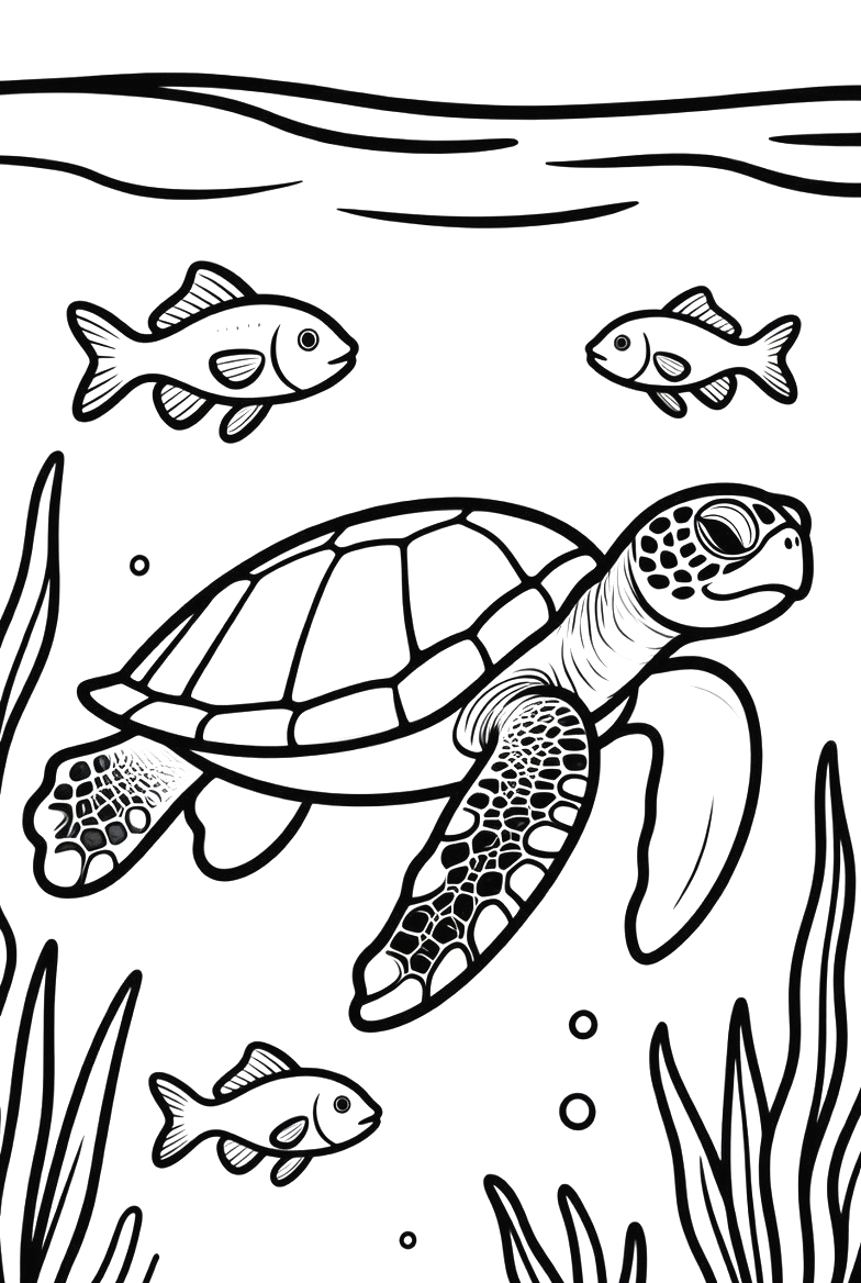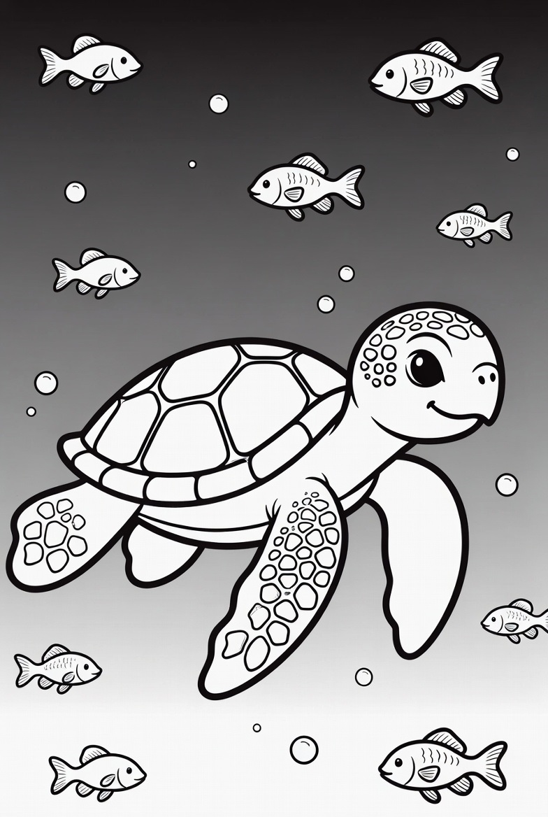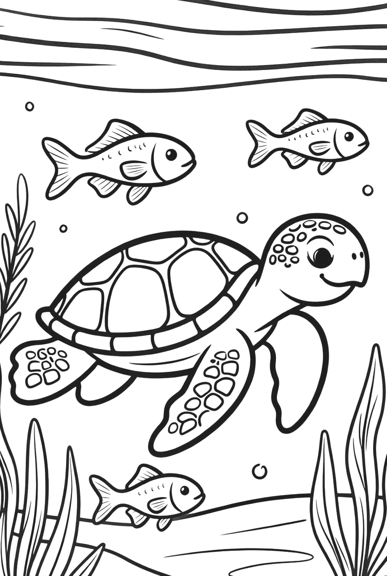 75 Turtle colouring in pages, all 75 are free to save and print. Cute turtles to color in! Turtles swimming to the left or right, swimming alone or with friends or family, sometimes swimming with fish and between seaweed, under the ocean, often with bubbles. Turtles just being turtles!