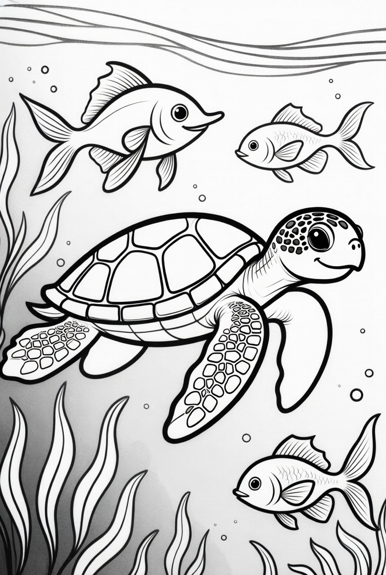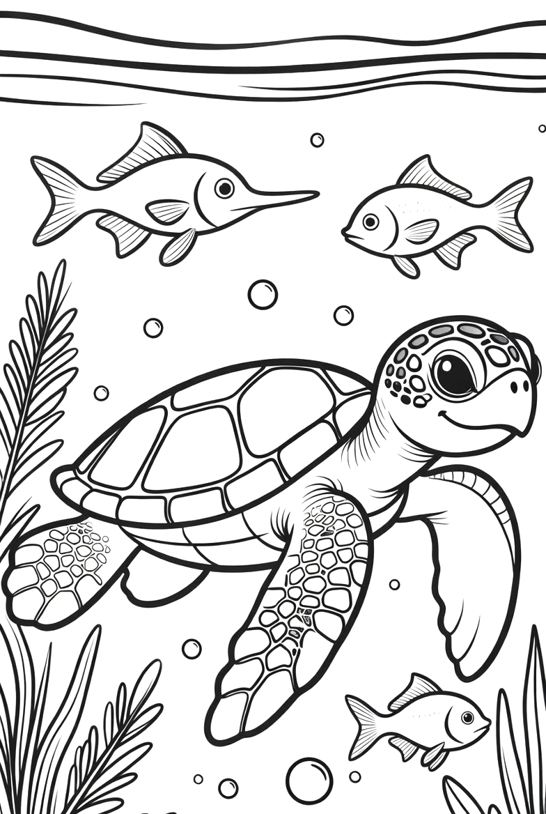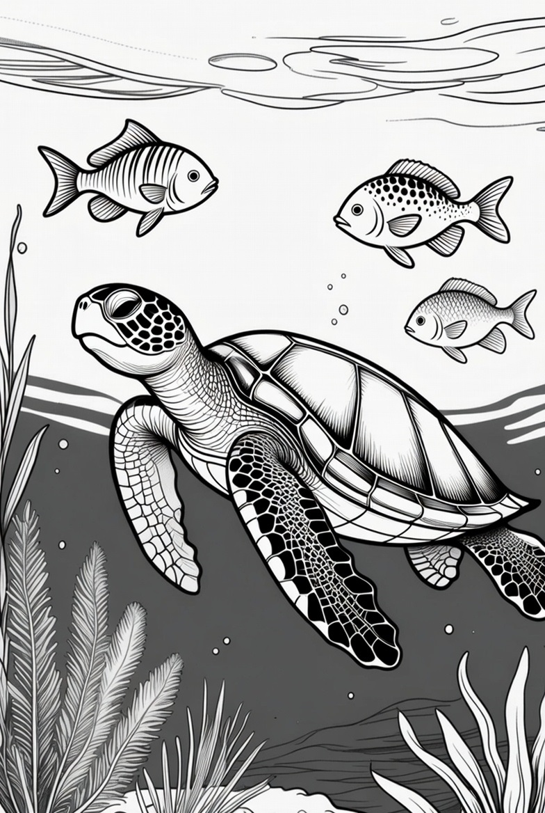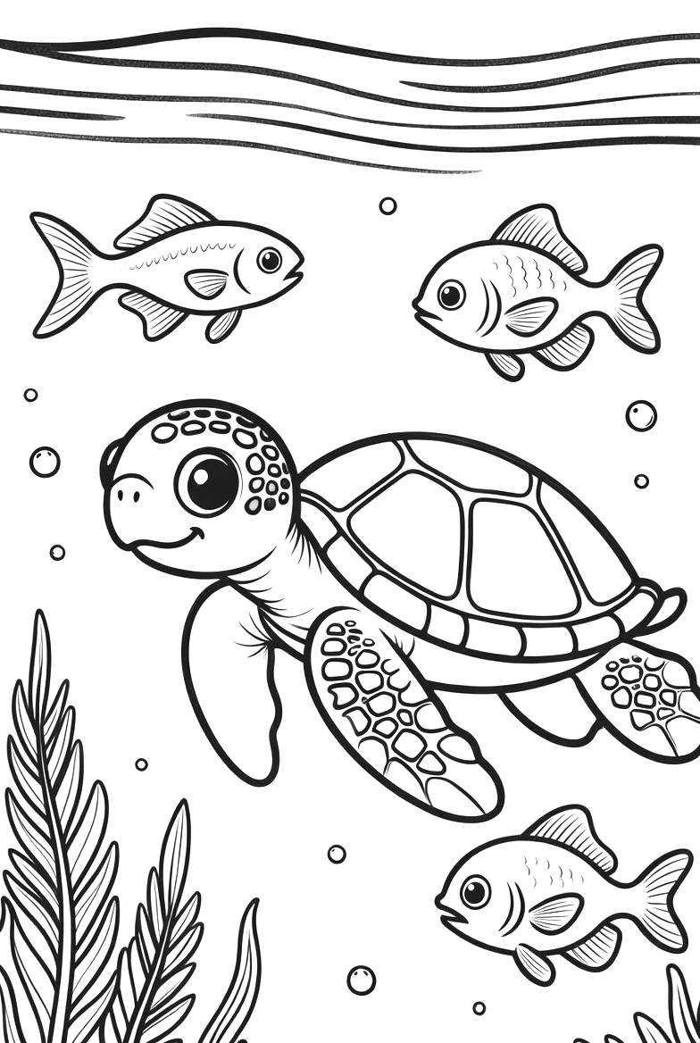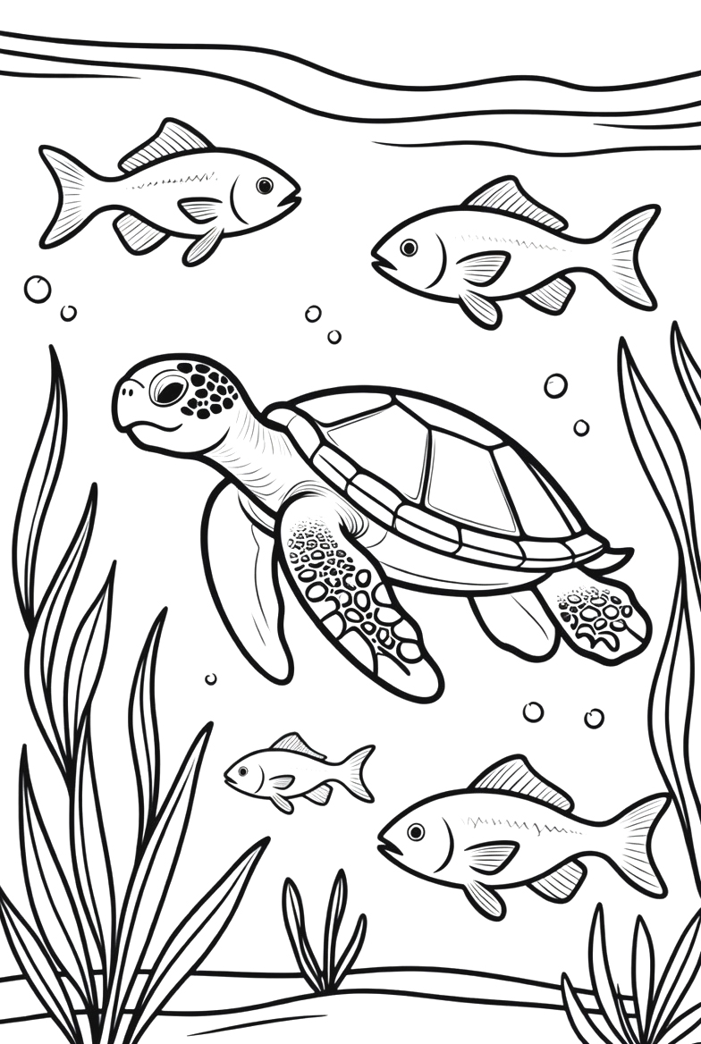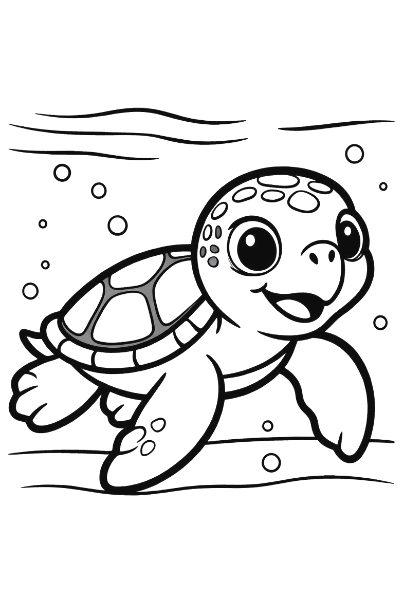 75 Turtle colouring in pages, all 75 are free to save and print. Cute turtles to color in! Turtles swimming to the left or right, swimming alone or with friends or family, sometimes swimming with fish and between seaweed, under the ocean, often with bubbles. Turtles just being turtles!