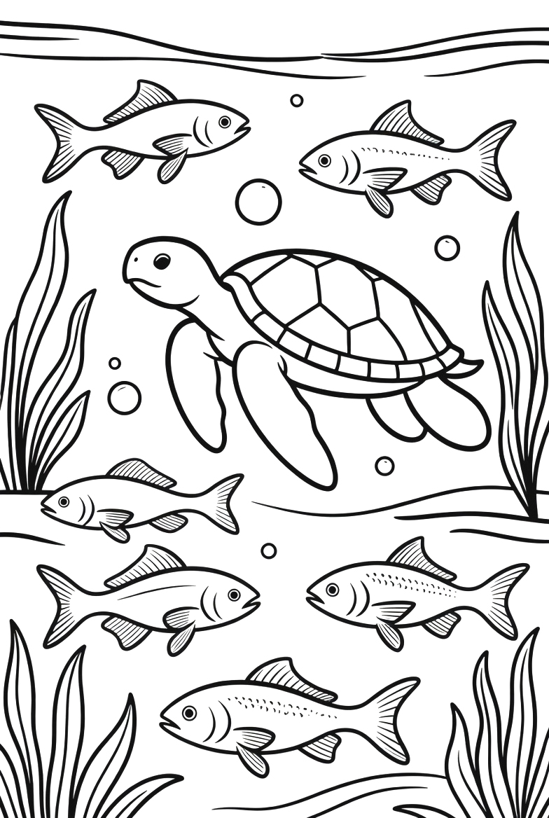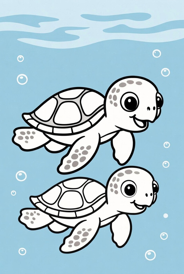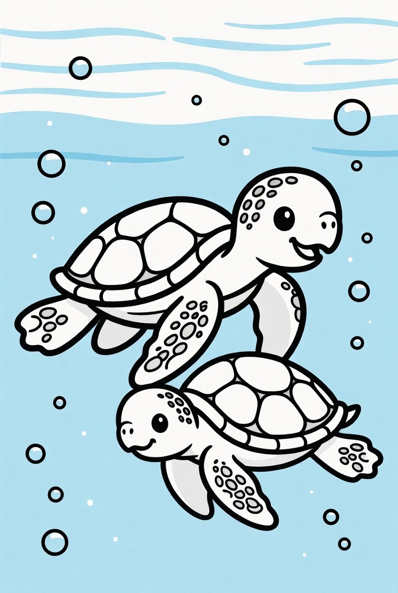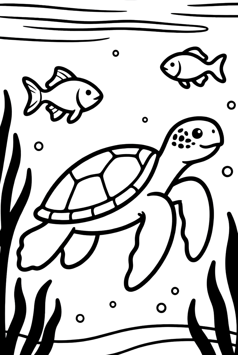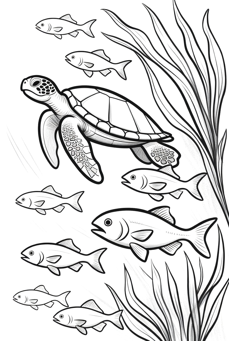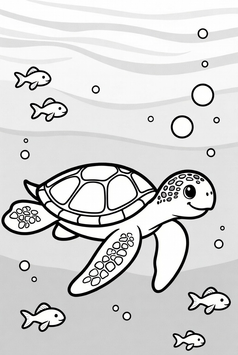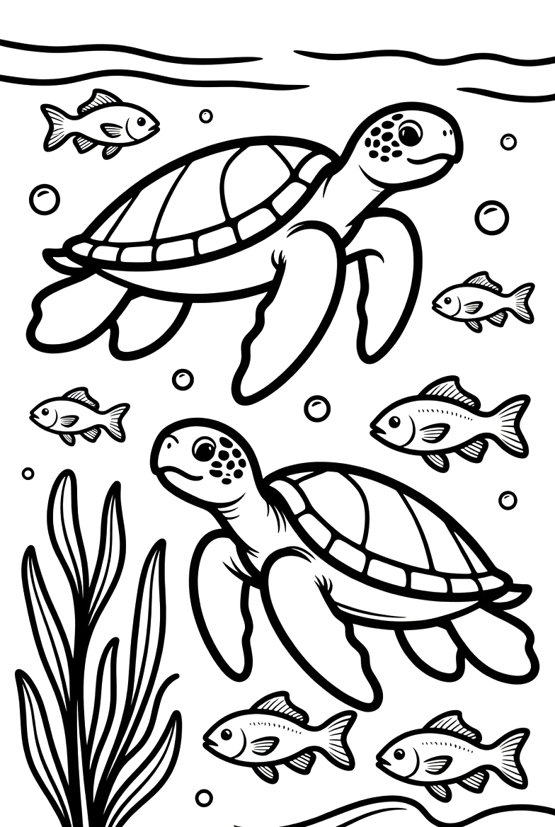 75 Turtle colouring in pages, all 75 are free to save and print. Cute turtles to color in! Turtles swimming to the left or right, swimming alone or with friends or family, sometimes swimming with fish and between seaweed, under the ocean, often with bubbles. Turtles just being turtles!