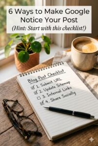 Link your new post from existing content on your site. Google follows links like a hiker following a trail through the woods. If your new post is isolated, it may take longer to get attention. A few well-placed internal links = faster indexing and more credibility.